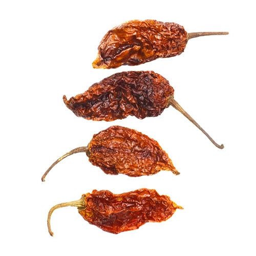 Native to the Assam region of India, the Bhut Jolokia Pepper is known by a variety of names including Naga Jolokia, Naga Hari, Nagu Morich, and Dorset Naga. "Naga" is a tribute to the fierce warriors of Naga in the Assam region. Other popular names include Bih ("poison") Jolokia and Raja Mircha ("King of Chiles"). In the Western Hemisphere, it is most frequently called the Ghost Chile. There are approximately 42 chiles per ounce.