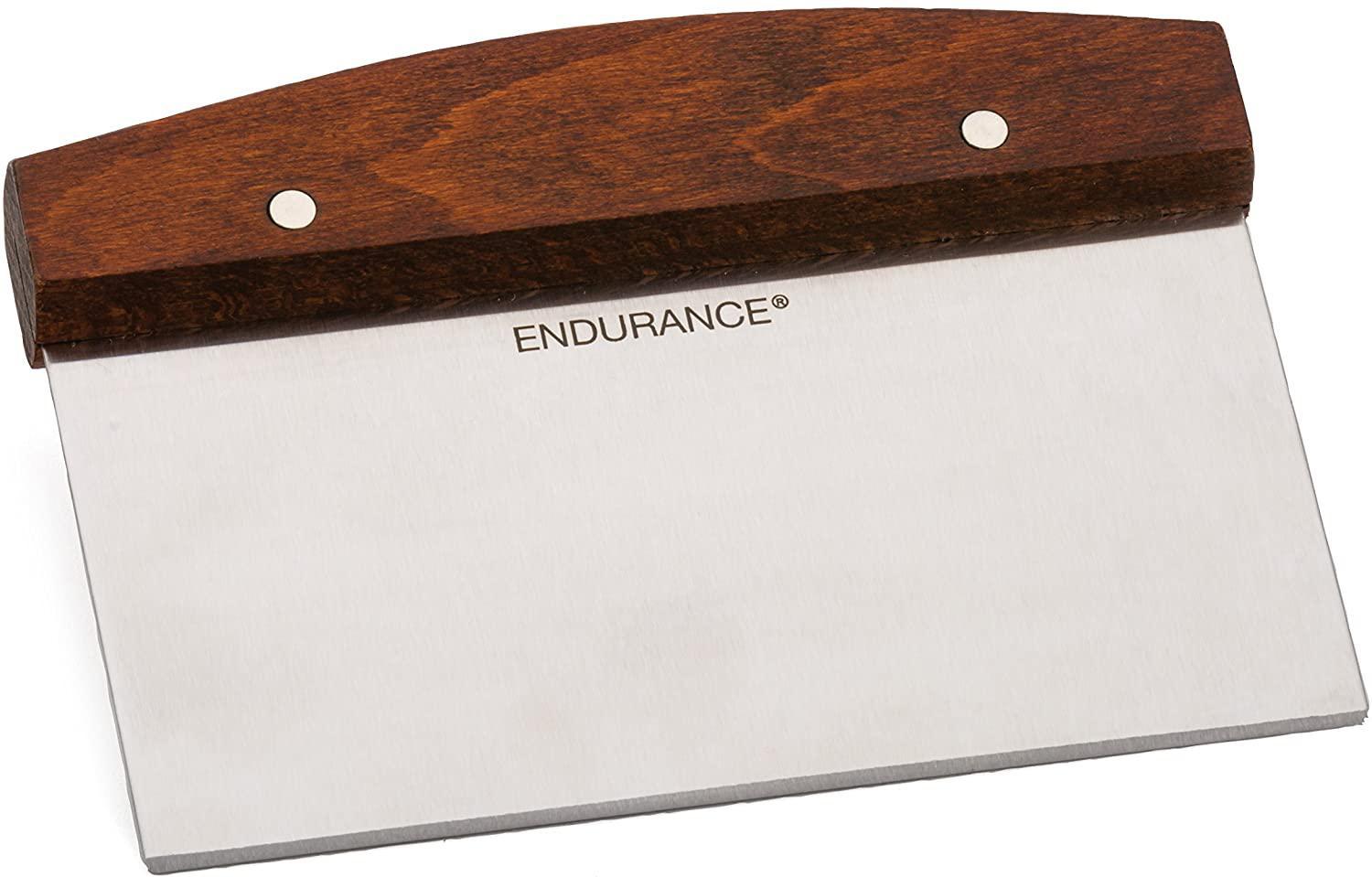 This bench scraper has a wide stainless steel blade which is securely fastened to the comfortable, contoured wood handle with a partial tang for strength.