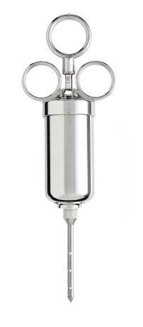 A Marinade Injector adds layers of flavor below the surface to tenderize meat and ensure tasty, mouthwatering results. This invaluable addition to cooking utensils and chef tools keeps meat moist and juicy when exposed to heat for prolonged periods of time, like roasting, grilling, rotisserie, and other slow cooking methods. With an ample 2-ounce capacity and a 12-hole injector needle, it easily infuses broth, stock, au jus, citrus juices, and marinades, along with infusing spices, directly where needed without becoming clogged. Easy to use. Simply depress the stem and submerge the tip of the needle into the marinade. Slowly pull out the stem to draw in liquid. Insert needle below the surface of the meat where desired. Firmly press the stem while drawing the needle out slowly to release the marinade at different depths for layers of flavor. Perfect for tenderizing meat, poultry and pork, beef, game, and fish and maximizing flavor. Made from nickel-plated copper for added strength and durability with a 12-hole stainless steel injector needle. HIC Roasting's Marinade Injector disassembles for a thorough cleaning. Store injector tip conveniently inside the injector tube when not in use. Dishwasher safe for easy cleanup.