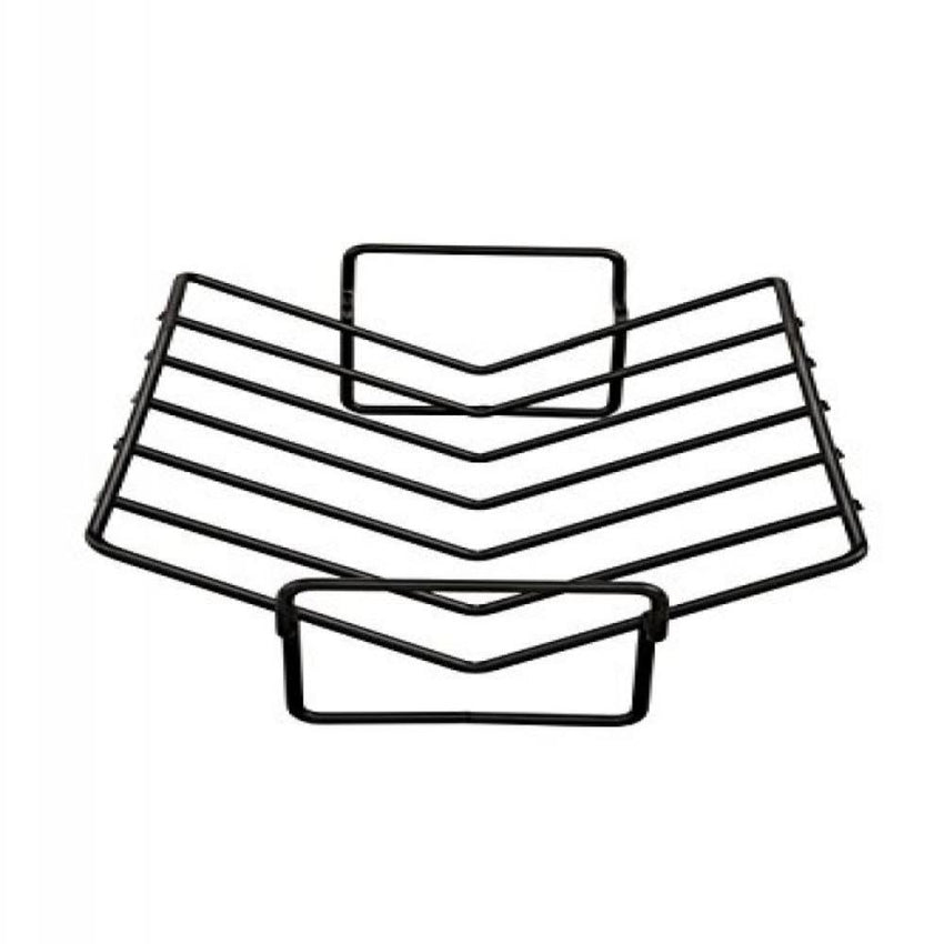 Nonstick Pro V Roasting Rack for cooking, baking, roasting, and broiling various-size cuts of beef, poultry, pork, game, and more. Made from heavyweight chrome wire with nonstick coating; durable and oven safe to 500-degrees Fahrenheit; won't scratch surfaces; resists rust. V-shape securely cradles food and elevates it above fat and juices; allows better heat circulation, even baking, faster cooking, and all-over browning. Reinforced handles make transfer into and out of a roasting pan easy. Measures 15-inches x 11-inches x 4-inches; hand wash in warm, soapy water. Holds poultry and meat above the bottom of pan for even roasting. Rack is designed to be used with a roasting pan. Use indoors in oven or outdoors on the bbq. Hand wash with non abrasive cleaner. Will hold up to a 20 pound turkey, ham or roast.
