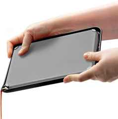 Fledge has flexible edges that flip up to turn it into a tray and stop food falling off the sides. Fledge's carving side has a generous juice groove for catching drips when cutting meat and other juicy foods. Features non-slip rubber feet on both sides to keep it secure. Dishwasher safe.