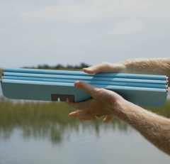 Full size 12’’x16’’ folding cutting board designed to easily fold, lock, and stow anywhere. It fits easily into kitchen drawers, boat boxes, tackle bags, or travel packs. When unfolded, it locks together to match the feel of a 1-piece design. Features non-slip rubber feet to grip any surface and a built-in knife sharpener so you’re never left with a dull blade.