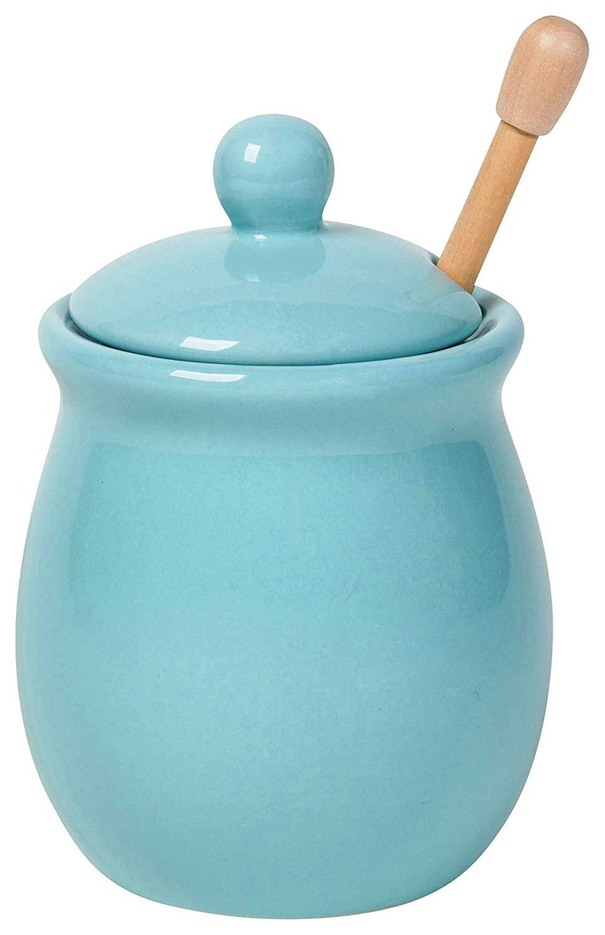 Honey is one of nature's true treasures. Keep honey on hand with this glazed stoneware honey pot. With a simple and appealing design, this honey pot features gently curved lines and a lid with an integrated handle. This honey pot measures 3.25 inches in diameter and 4 inches tall. A bamboo honey dipper is included, to easily drizzle honey on toast, pastries, or in tea. A notch in the lid keeps the honey dipper steadily in place when not in use. To care for your honey pot, hand wash or clean in the dishwasher (top rack).
