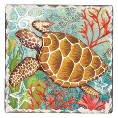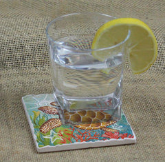Counter Art decorative coasters feature a natural stoneware construction that absorbs drips and condensation from beverages, protecting your tables and countertops. The beautiful, detailed design is a transfer print with permanent ink that is FDA approved. A durable natural cork backing on each coaster also prevents scratches on your furniture. These coasters measure 4 inches across.