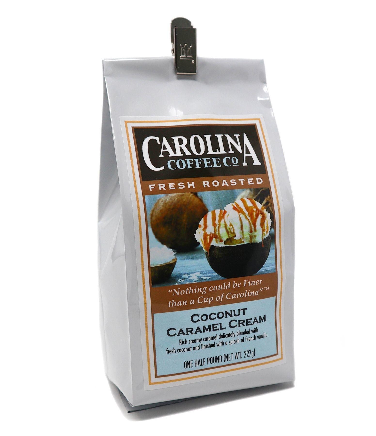 This hand crafted medium roast specialty is taken warm from the roaster and carefully flavored with rich and creamy Caramel then delicately blended with fresh Coconut and finished with a splash of French Vanilla.