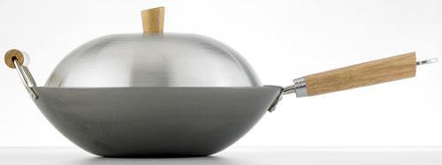 Helen Chen's Asian Kitchen 14-inch Carbon Steel Flat Bottom Lidded Wok Set. A traditional carbon steel wok set created in collaboration with Helen Chen. Includes 14-inch wok, domed metal lid, 13-inch bamboo spatula, and recipes. Crafted from 1.6 mm carbon steel for durability, comfortable weight, and quick conduction. Durable and attractive wooden handles; compatible with gas and electric stoves. Simple initial seasoning required.