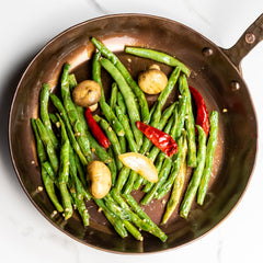 This traditionally forged skillet features a classic round shape perfect for sautéing, searing, making sauces, and general daily cooking. This pan is ideal for the chef who enjoys traditional beauty and no-frills cooking.