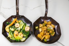The hybrid pan was forged as a fun experiment but has quickly become a customer favorite due to its usefulness in the kitchen. It is a unique design that combines our polygon skillet’s ideal pour spouts with the sautéing ability of a classic round pan. Even professional chefs find themselves drawn to this useful and beautiful design. This skillet is perfect for the chef who enjoys sautéing and cooking foods that require pouring.