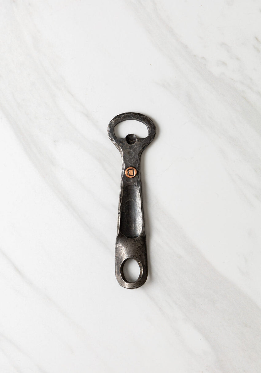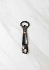 This hand forged classic-style bottle opener will add a rustic feel to your bar or kitchen. Their quality forged carbon steel design conveniently removes tops with ease. We add our copper touchmark for added elegance.