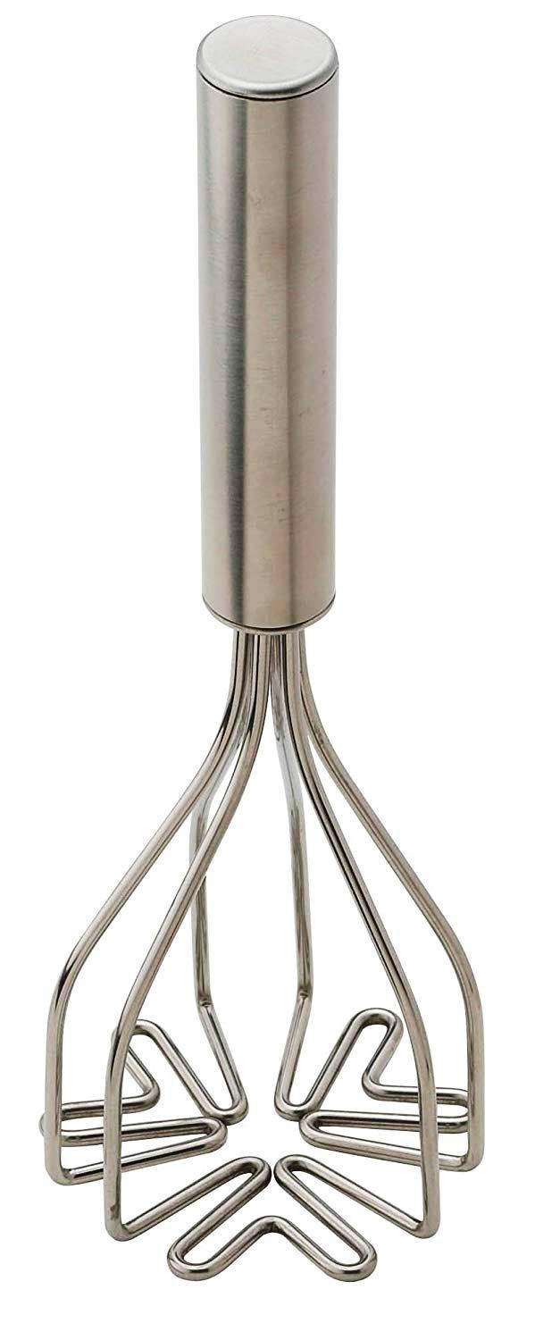 A fine quality hand mix n' masher. Made of stainless steel; measures 10-1/4 inches. Mixes and mashes in one easy motion. The stainless steel blades scrape the sides of bowl or pot while mixing. An easy to clean, sturdy design. Dishwasher safe.