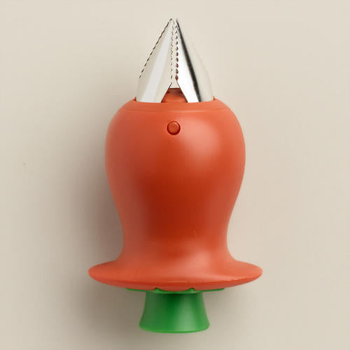 Core tomatoes quickly and cleanly with our Hullster Tomato Corer. Simply push the button to extend serrated stainless steel blades and twist to remove the core. This kitchen timesaver is a necessity for canning or making stuffed tomatoes. Top rack dishwasher safe.