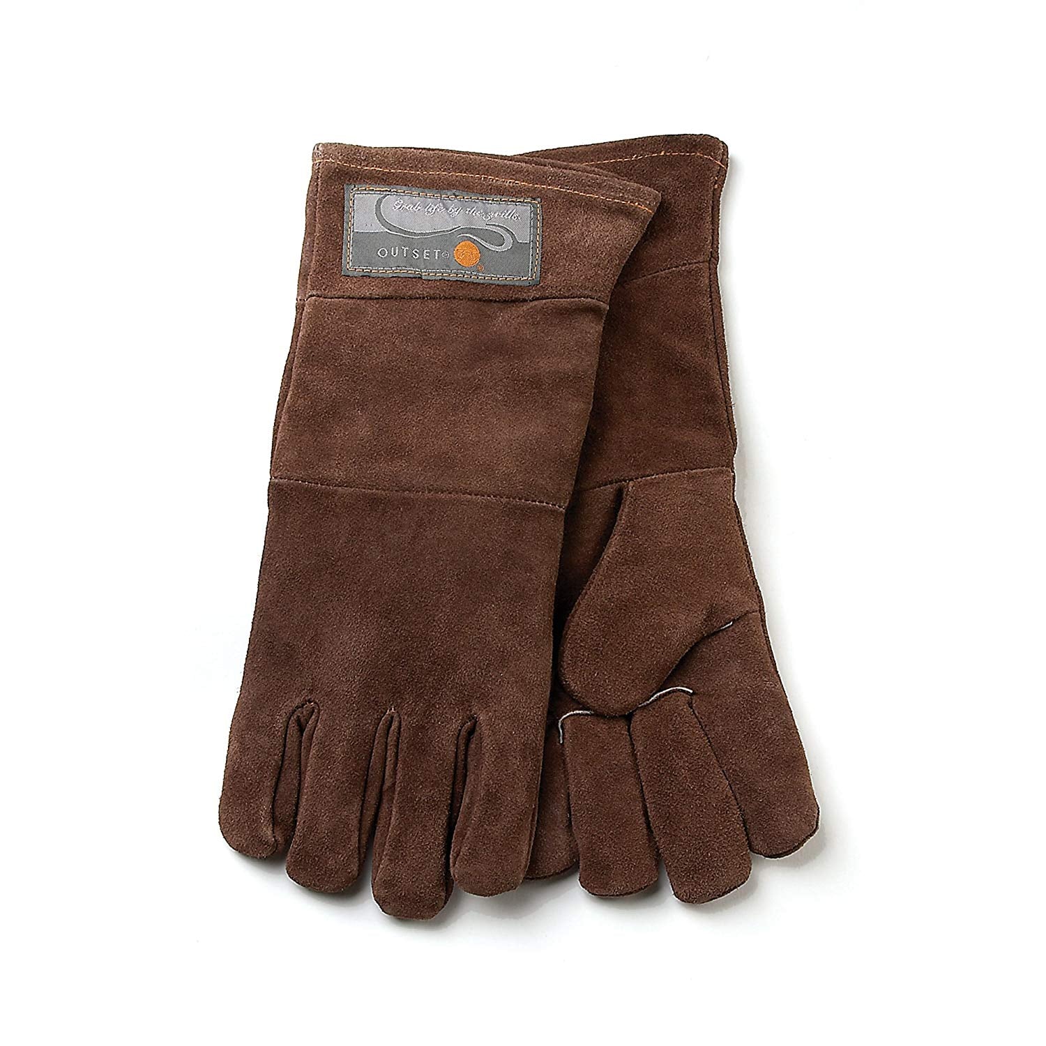 Outset's 15-inch Leather Grill Gloves allow for more dexterity and control than a traditional mitt. Helps to keep your hands and arms safe from burns while barbequing. Impeccably manufactured to meet exclusive standards in outdoor entertaining, the quality of Outset's barbeque accessories is peerless. Set of 2. One size fits all.