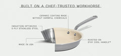 Crafted in the USA, Made In coats each piece of their Award-Winning 5-Ply Stainless Clad Cookware with two layers of professional-grade, FDA-approved Non Stick. The result is an even-heating stainless base with a frictionless cooking surface that is durable enough for high-volume restaurant kitchens, and is the easiest to clean.