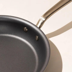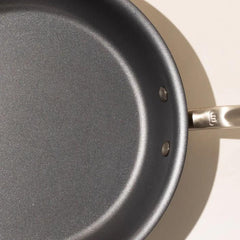 The combination of the Non Stick coating with the heat control of this Frying Pan makes this pan ideal for cooking almost anything, from French omelettes to oil-free stir-frys. A flared lip and long, ergonomic handle makes for comfortable and easy flipping. Plus, the hollow Stay Cool Handle™ and oven-safe coating up to 500F means you can oven-finish dishes.