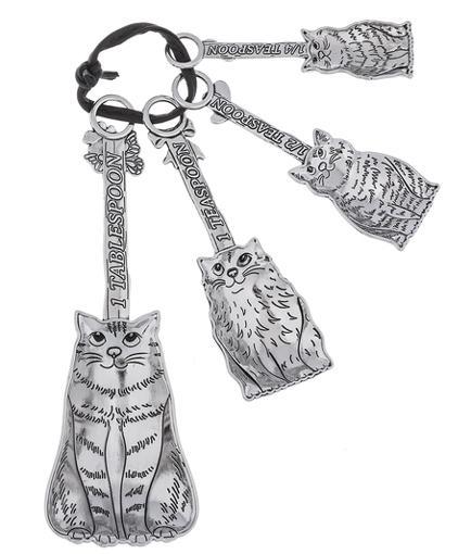 This adorable set of Ganz Cat Measuring Spoons are will some fun and whimsy into any kitchen. They are made of sturdy zinc. This charming set of Ganz Cat Measuring Spoons makes a great decorator item and the spoons are functional as well. This set of measuring spoons has detailed cats on both sides.