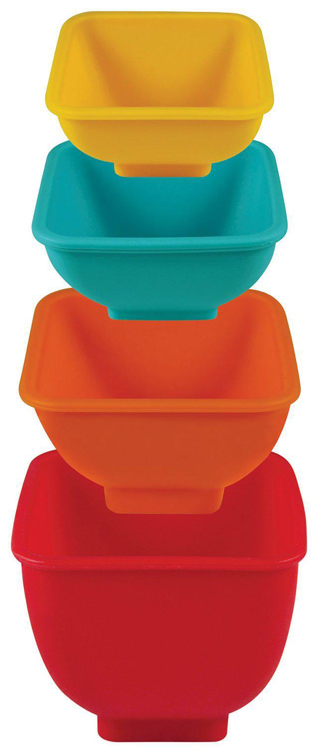Mrs. Anderson's silicone flex and pour measuring cups are versatile cooking utensils and a must-have of baking tools for home cooks, pastry chefs and professional chefs. Measuring out all cooking or baking ingredients before mixing recipes can save valuable time during food preparation. These measuring cups are made to be flexible to pour ingredients easily and reduce mess. They work as both dry measuring cups and liquid measuring cups and double nicely as prep bowls, pinch bowls and condiment bowls. Made from FDA approved silicone, Mrs. Anderson's flex and pour measuring cups are naturally non stick for quick release of ingredients and the non-porous surface eliminates any worry of cross-contamination of foods during food preparation. They are heat resistant to 500-degrees Fahrenheit, oven, microwave and dishwasher safe for easy cleanup. Compact for easy storage. This silicone measuring cups set includes 4 standard kitchen measurements; 1/4, 1/3, 1/2 and 1- cup measurements.