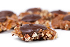 These Dark Chocolate Caramel Pecan Caramillicans (similar to Turtles) are one of our customer favorites. We mix butter-rich caramel with our fancy pecans and top them with rich dark chocolate. These dark chocolate pecan turtles for sale come packaged in a decorative gift box. Order your pecan candy treats today!