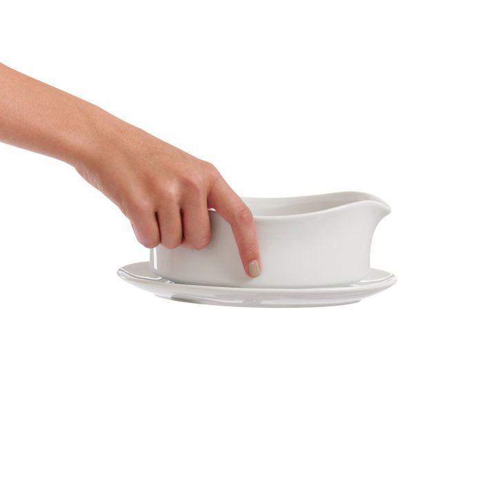 HIC's Gravy Boat with saucer attached is versatile as serveware for everyday dining, holiday meals, parties, even outdoor entertaining. Traditionally used for gravy, it’s generous 18-ounce capacity makes it the perfect sauce boat or sauciere for broth, au jus, sauce, salad dressing, and more. Double pour spouts make serving from either end easy and convenient and keep the gravy ladle or serving spoon from falling in. The attached saucer catches drips to minimize mess at the table. HIC's Gravy Boat is made from fine-quality porcelain, which naturally retains heat and keeps foods warmer, longer. Its safe for use in the microwave, so reheats are a breeze. A tradition since 1965, HIC Fine Porcelain Serveware is safe for use in the microwave, oven, and freezer and won't transfer odors, colors or flavors between uses. It's dishwasher safe, making cleanup easy.