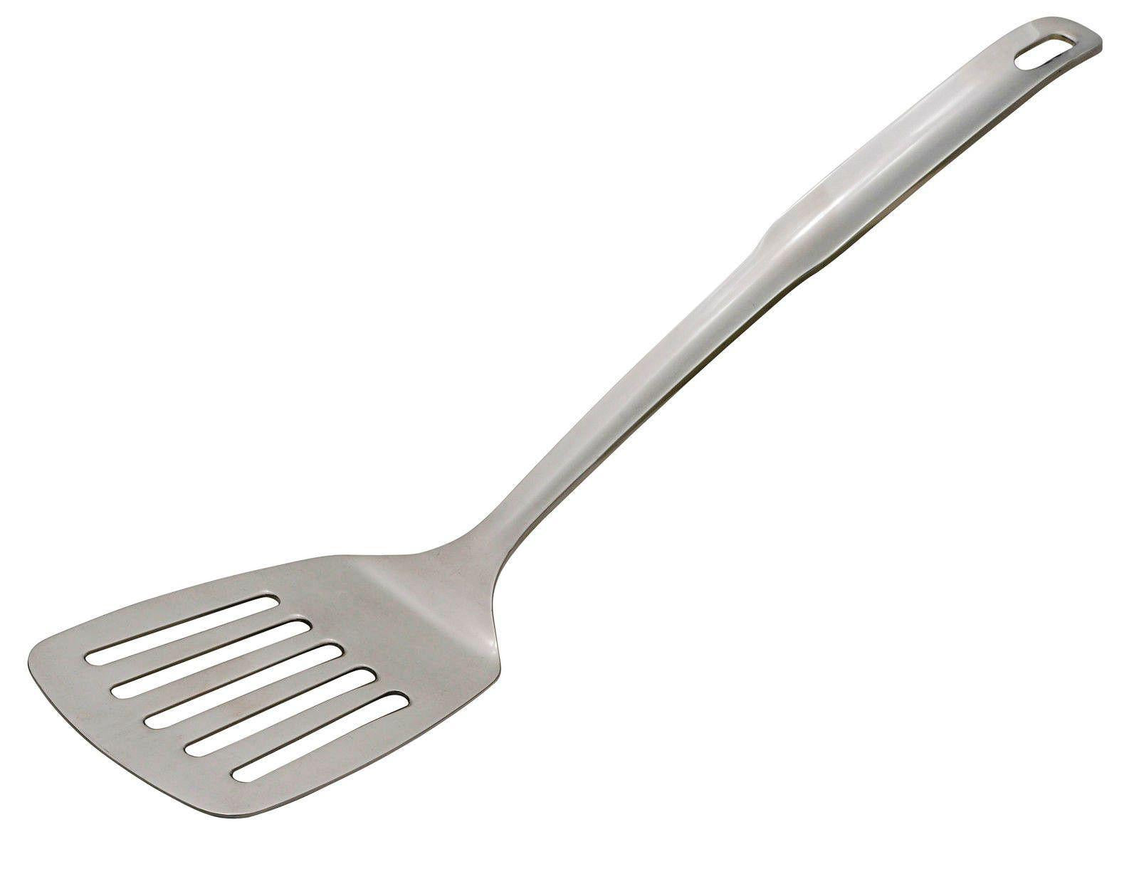 Perfect for the turning and flipping tasks in the kitchen, this long-handled Turner (13.25") keeps your hand a safe distance from the hot eye. From Harold Imports collection of Cooking Tools, the turner features 18/8 stainless steel with a polished finish and contoured handle. Its heavy weight makes is a great choice for serving. Stainless steel 18/8 construction.