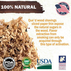 Our wood chip smoking fuel is hand crafted from woods, herbs, spices, flowers and teas meticulously designed to complement the most exotic of taste. Our woods are air dried for 18 to 24 months or kiln dried to 8% humidity, then shaved to a fine rolled leaf or flake, the optimal composition for the extraction of culinary flavor for smoke infusions. A final light toasting is performed to optimize the flavor extraction from the wood.