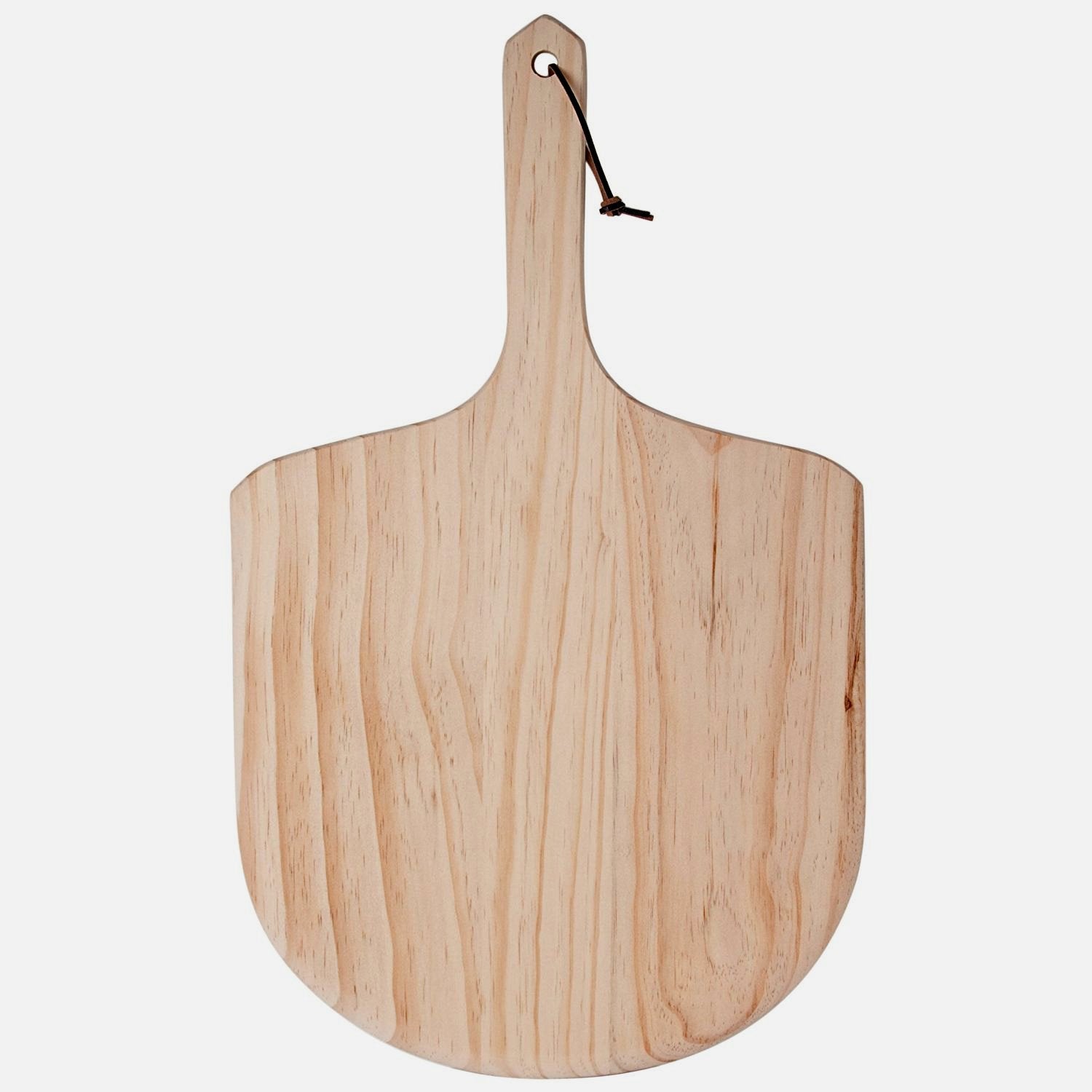 Transport pizza, flatbread and other artisan breads into and out of a hot oven or grill. The beveled front edge easily slides under pizza for easy lifting. Paddle surface measures 14" x 15.5". Made from natural New Zealand pine.