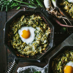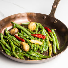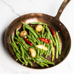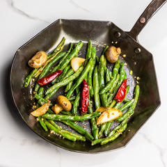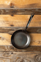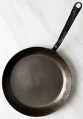 This traditionally forged skillet features a classic round shape perfect for sautéing, searing, making sauces, and general daily cooking. This pan is ideal for the chef who enjoys traditional beauty and no-frills cooking.