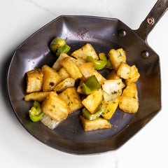 Our 10” Hand forged round skillet is the ideal size for everyday cooking for 3-4 people. Whether you’re searing proteins, sautéing vegetables, or cooking a family breakfast, this versatile skillet will quickly become your primary go-to pan in the kitchen. This traditionally forged skillet features a classic round shape perfect...