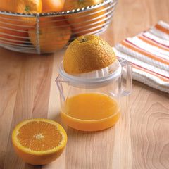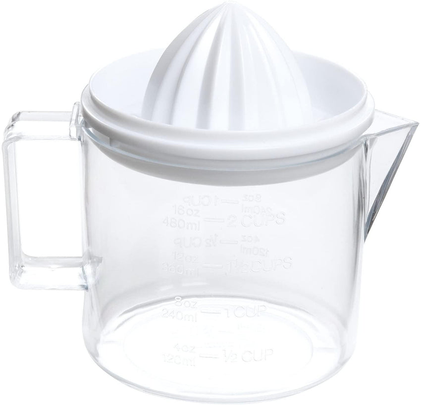 Make quick work of juicing your favorite citrus fruits. The handy 2 Cup Juicer Set combines the simplicity of manual juicing and convenience of a mess-free collection. Easily juice lemons, limes, and oranges with the included reamer on top. Freshly squeezed juice will collect in the cup, while pulp and seeds are filtered out. Helpful measurement markings are featured on the cup, along with a pour-spout (2 cup capacity), making it easy to measure and mix in for recipes. Minimize mess, and maximize functionality.