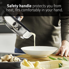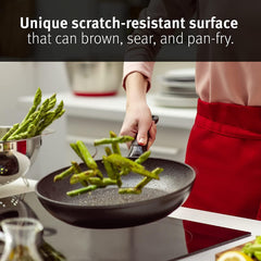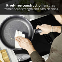 The Fissler Adamant Comfort Pan is scratch-resistant thanks to extremely robust nonstick coating, for carefree use of metal utensils. Induction-compatible all-stove base offers excellent thermal conductivity, saving energy and ensuring best results for gentle and crispy frying. High rim and extra wide frying surface make cooking easier. Also performs on glass ceramic, gas and electric stovetops. Ergonomic safety handle, integrated measuring markings and more. Easy to clean because there are no inside rivets to collect food or bacteria.