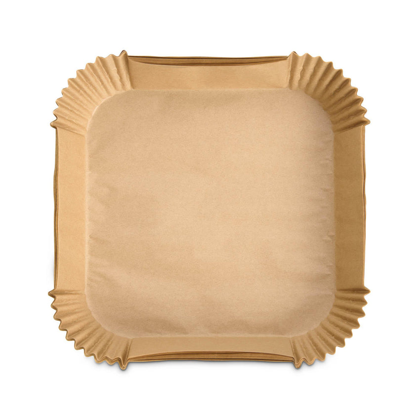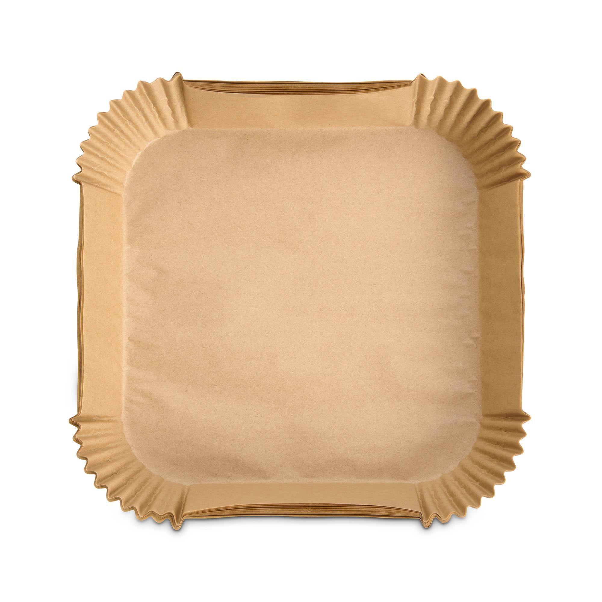 These Square Air Fryer Liners keep foods, oils, glazes, and sauces from sticking to air fryers cooking baskets to keep them clean Made from unbleached, chlorine-free paper and non-stick, solvent-free, food-grade silicone coating; set of 100; measures 6.5 x 6.5 x 1.75-inches Fits 3 to 5-quart square air fryer baskets; won't block hot air circulation; safe for oven (to 425-degrees Fahrenheit), multi cooker, and microwave Thicker than standard parchment paper (0.04-millimeter) to lift liner and cooked foods without it tearing; absorbs cooking oils for healthier cooking Non-stick, waterproof, oil proof, single-use and disposable for easy cleanup, compostable, and fully biodegradable.