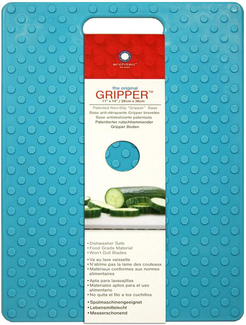 The Original Gripper Cutting Board by Architec is an award winning design and a must have item for every kitchen. Each cutting board has over 300 small, soft rubber feet which grip the counter top, preventing the board from slipping and sliding while you work. The gripper feet are permanently bonded to a heavy duty plastic surface, creating a durable plastic cutting board that is easy on knife blades. The collection of Gripper Cutting Boards offers a range of sizes, a large, medium and Bar Board with enough surface area which will cover every cutting, chopping and food prep job in the kitchen or at the bar. The Original Gripper Boards are easy to clean and care for, simply pop in the dishwasher or wash by hand; they have a low profile for easy, compact storage. A functional tool for the kitchen with an interesting design in bright, beautiful solid or translucent colors, the Gripper Board will earn a coveted spot on the counter top. Made from BPA-free and FDA approved plastic which is dishwasher safe. The Architec brand offers an assortment of frequently used kitchen items which were created by applying basic principles of architecture & engineering to improve their beauty and function; resulting in a better experience in the kitchen for you!
