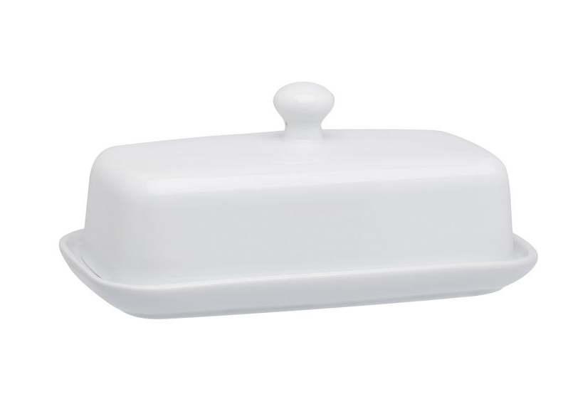 White porcelain Schmidt Butter Dish, measures 7 in x 3.5 in x 2.25 in.