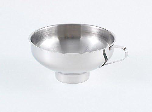 When it comes to canning, your tools are very important. This canning funnel is very useful and quite reliable. Made of beautiful and durable 18/8 stainless steel. It has a convenient, side mounted handle and is 5.5-inches in diameter. This Stainless Steel Canning Funnel makes transferring liquids and dry items a breeze! They're a great addition to kitchen accessories. Quickly change, fill or refill contents for easier food preparation. Refill canisters, dispensers, and food storage containers with bulk foods, like sugar, flour, rice, grains, and other dry goods. These kitchen tools are versatile for many tasks around the house, too. A wide opening offers easier pouring with less mess for canning cranberry sauce and more.