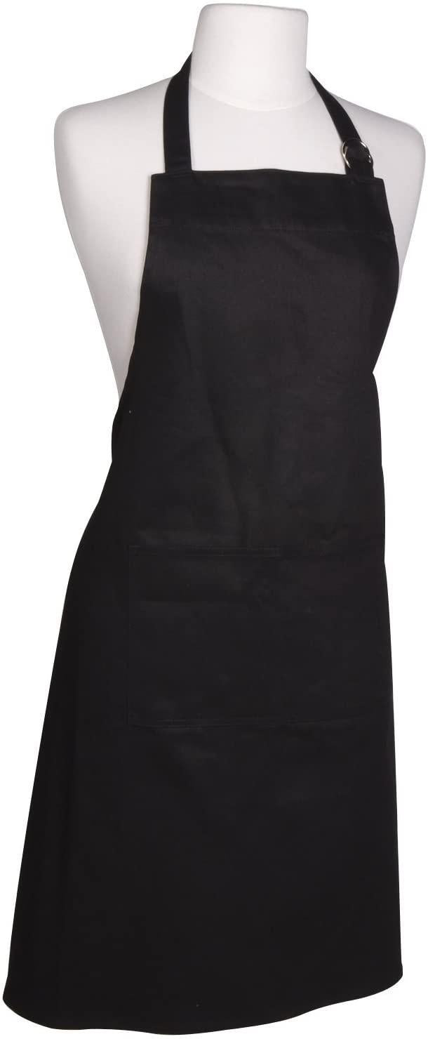 This unisex basic kitchen bib style apron is a beloved classic and is truly a workhorse in the kitchen. It is made from heavy-weight 100 percent cotton and woven on an oversized loom making it 6 inches wider than other aprons to help provide the perfect fit. This chef's apron is designed to fit men and women: it ties at the waist and features an adjustable neck strap for a comfortable fit. Stress points throughout the apron have been bar-tacked for extra durability and to resist wear and tear. The deep front pocket is great for tucking away recipe cards, kitchen towels or dishcloths, trivets and utensils. Care is simple: machine wash and dry.