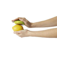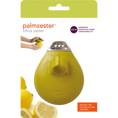 The Chef'n Palm Zester features a stainless steel blade and collects the zest in a small compartment as it's made. The unique design hugs your fingers for safe and controlled zesting of lemons, oranges and limes. The zester comes in assorted colors and is top rack dishwasher safe. Measures 2.7" l x 1.7" w x 1.25" h.