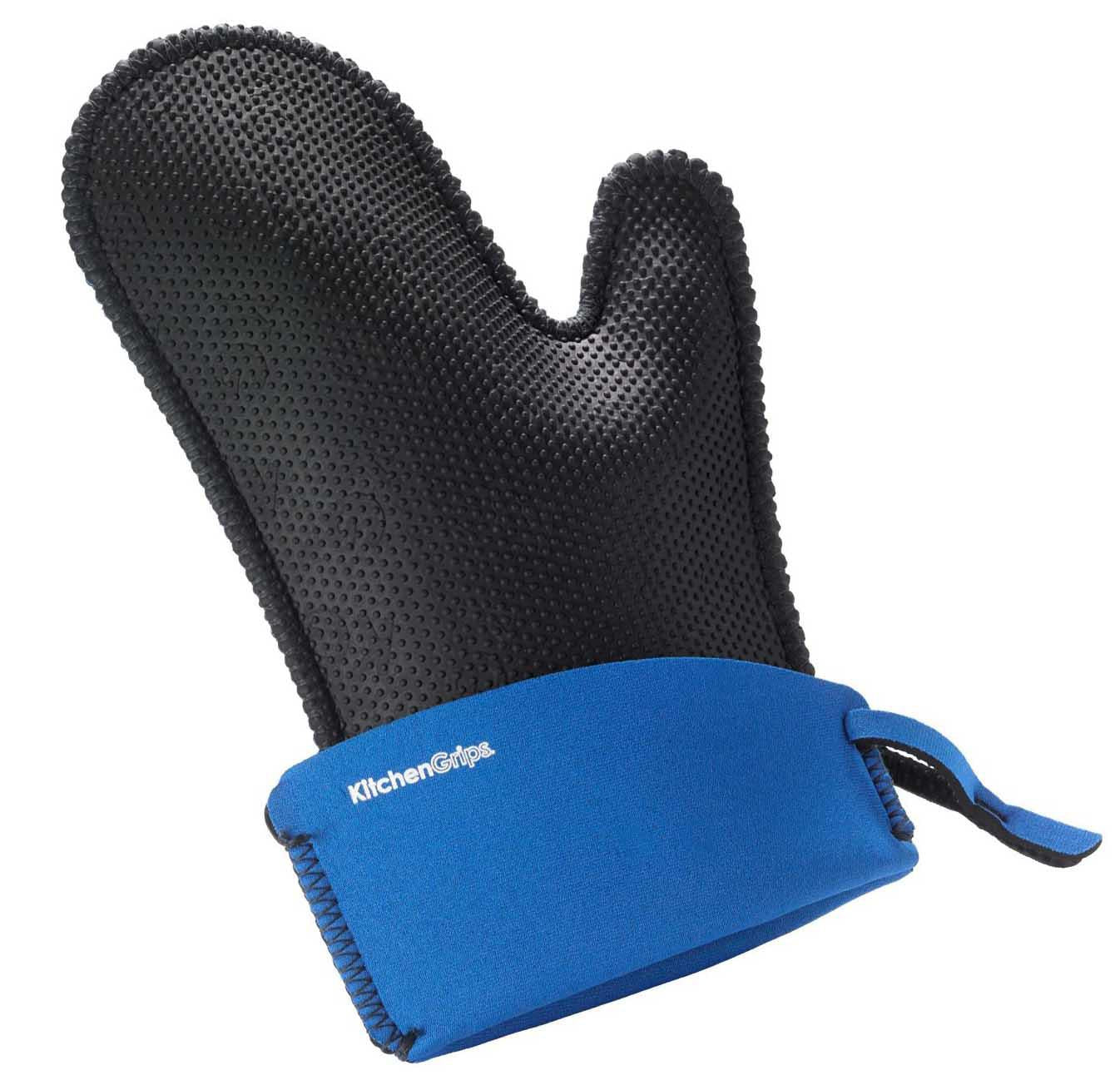 Kitchen Grips have an improved insulation, non-slip grip and the unique FLXaPrene material helps you safely remove hot food from the oven to the table. FLXaPrene is a non-porous material that stops bacteria growth and prevents stains that cause bacteria buildup on the glove. Each Kitchen Grip's non-slip grip, non-skid, raised nub surface creates more insulation between the hand and heat source creating a mitt that is heat-resistant 500 F/260 C to -134 F/-92C. All Kitchen Grips mitts are top-rack dishwasher safe or machine washed and air dried. Made in the USA.