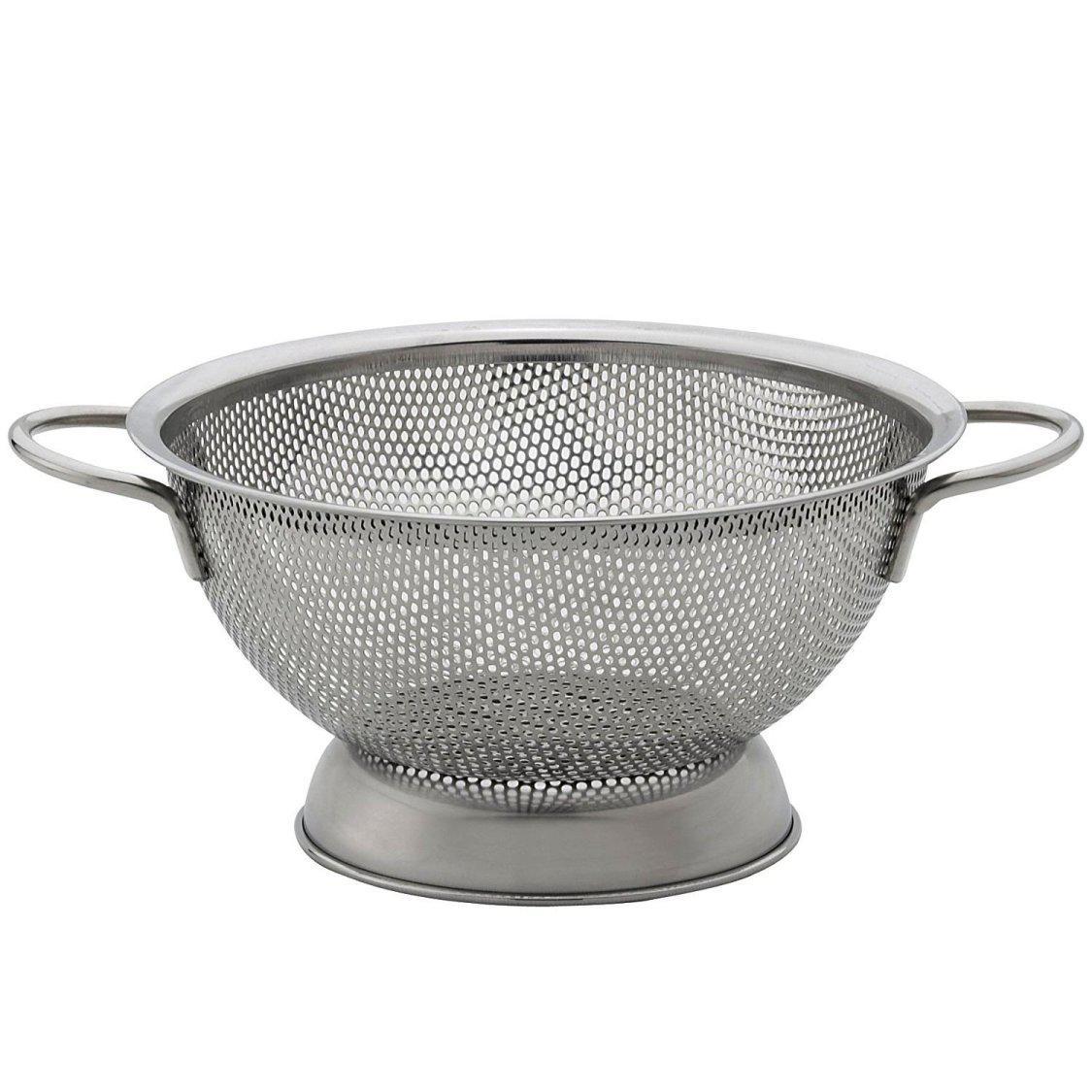 This stainless steel perforated colander is made of durable and attractive 18/8 stainless steel with a sturdy base. It has an 8-1/2-inch diameter and is perfect for draining and rinsing foods such as pasta, seafood, fresh fruits, salads, herbs and vegetables. Features a convenient double handle. HIC Essentials are kitchen tools that are built to the exacting specifications of the world's best culinary shops. A portion of the proceeds for every Essentials item sold goes to C-CAP - Careers through Culinary Arts Program. A national nonprofit, C-CAP manages the largest independent high school culinary scholarship program in the United States, preparing under served high school students for college as well as careers in both the restaurant and hospitality industries. Dishwasher safe.