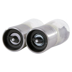 The Cole & Mason 6 inch Clifton Salt & Pepper Mill Gift Set, top grinding, pairs elegant satin metal and glass design with the renowned Cole & Mason Precision mill for the perfect table setting. Every Cole & Mason Clifton peppermill is made with precision-crafted carbon steel millworks for years of service, and salt grinders feature diamond-cut ceramic millworks. Mill chambers are clear for display and refill is a snap by unscrewing the top to open. The chamber is heavy glass that will last. Set the perfect grind and flavor from fine grains to coarse chunks by adjusting the dial setting inside the lid. Clifton sets are gift boxed and make a great wedding, housewarming or holiday present.