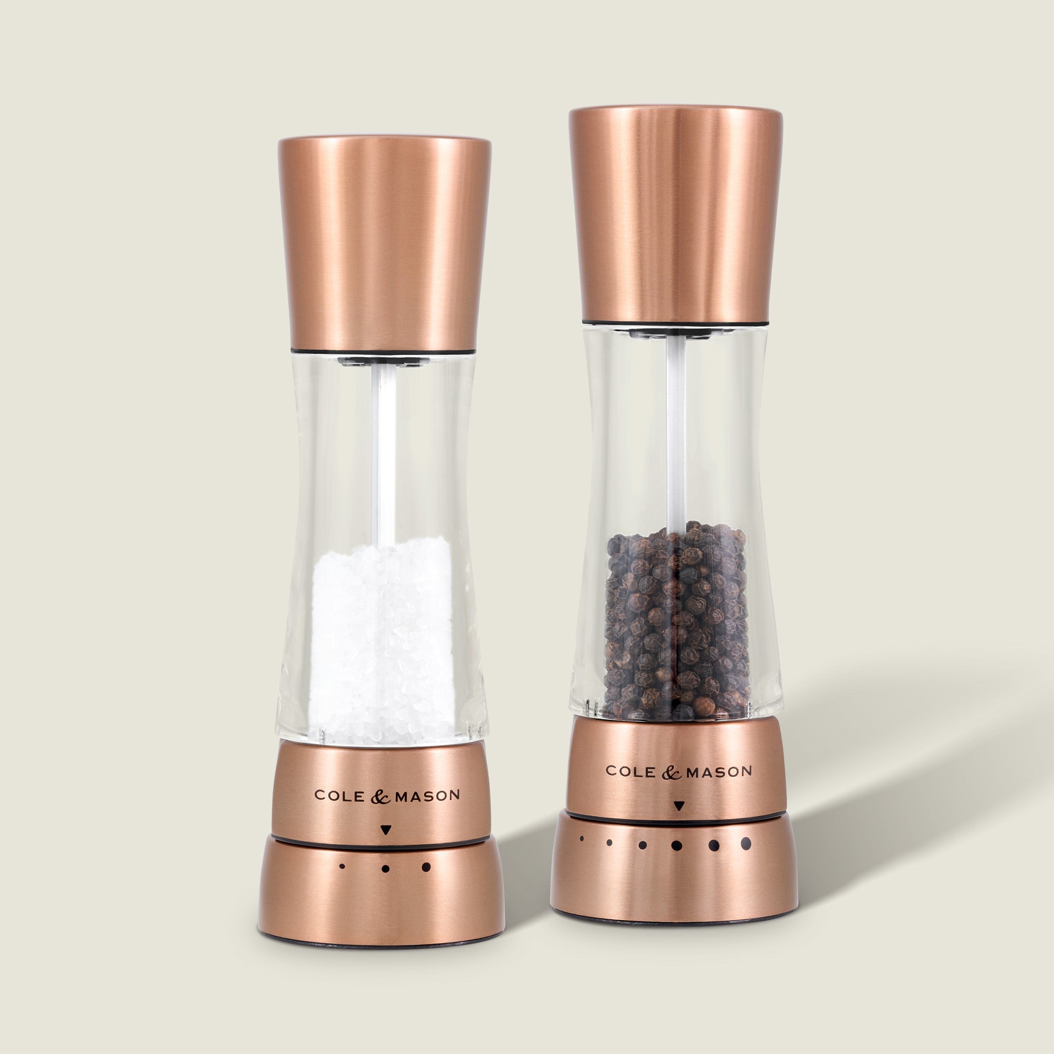 The Cole & Mason copper Derwent mills are the perfect balance of contemporary style, classic elegance and exceptional performance. Made from crystal clear acrylic and stainless steel they make a beautiful addition to any home.