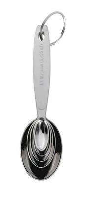 Innovative oval shape makes it easier to get into smallest spice jars and other small containers. Gently curved handles allow the spoons to sit securely on the counter without tipping over. Nested set comes with convenient storage clip to keep them together. Set of 5 red spoons. Dishwasher safe.