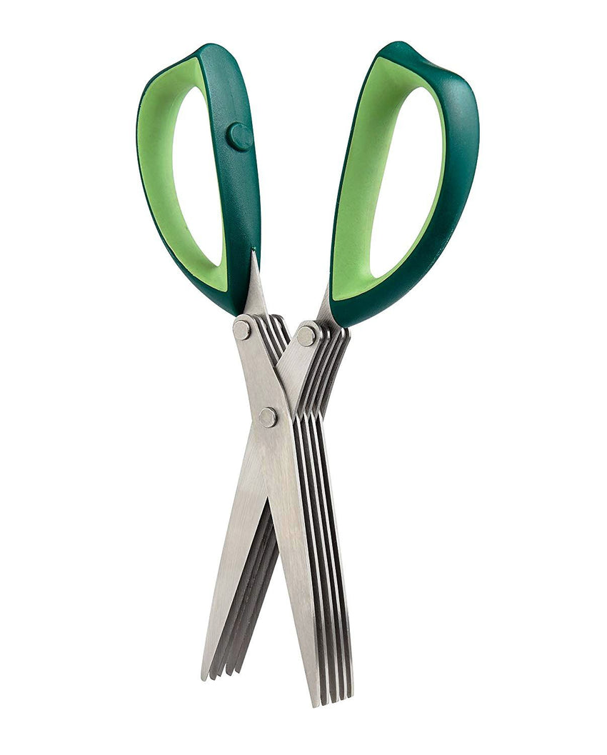 Cutlery-Pro’s Herb Scissors for snipping, cutting, chopping and shredding. With 5-stainless steel blades on each side and soft, easy-grip handle for added comfort during use, it easily cuts 3 uniform-sized pieces with each snip for food that looks neat and cooks evenly. A versatile addition to cutlery and cooking tools, they process ingredients in just seconds to save valuable food preparation time. The best scissors for home cooking, baking, and mixology. These shears gently snip chives, cilantro, mint, parsley, or strips of basil, releasing only their freshest flavors and aromas. No more overworked or bruised herbs infusing an unwanted bitter, grassy taste! Easily add chopped herbs and other ingredients directly to pots and pans, or garnishes to plates before serving. Make fragrant finishes for baked treats and dessert recipes, like chopped strawberries, or mint for mixed drinks and craft cocktails, top hot chocolate, coffee beverages, and frozen drinks. Make chopped salad directly in a serving bowl or chopped egg for egg salad, quick pickle relish, chopped onions, mushrooms, shredded deli meats, and so much more. These multipurpose kitchen shears are a helpful addition to paper cutting, scrapbooking, cardmaking, and craft supply items, too. Made with stainless steel blades, Cutlery-Pro’s Herb Scissors are strong and durable, and will never rust. Use a soft-bristled brush to dislodge any food bits, as needed. Hand wash in warm, soapy water.