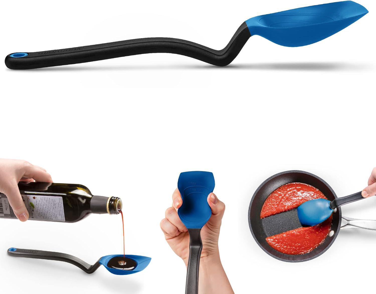 Supoon is the world’s best cooking spoon. It has a flat squeegee tip and flexible sides to scrape your pan or bowl clean, a deep scooping head, measures teaspoons and tablespoons, and its clever handle design is like having a built-in spoon rest so your Supoon’s head sits up off your counter.