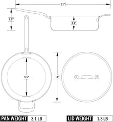 Five ply fully clad construction includes three layers of aluminum that are sandwiched between protective layers of stainless steel, resulting in cookware that combines even heating with incredible durability. Use it on any stovetop (including induction), in the oven up to 800 degrees and it’s broiler safe. The handles are built to stay cool on the stovetop and rounded pan lips enable drip-free pouring.