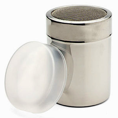 Fill this Fine Mesh Shaker with flour for easy sifting, or fill with powdered sugar for dusting the tops of pastries. Think cinnamon, cocoa, nutmeg, and vanilla for coffee. The top, which twists open for filling, comes with an air-tight plastic cover to keep the contents fresh. 18/8 Stainless Steel....