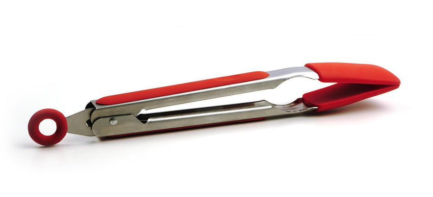 Ideal for nonstick cookware with textured ridges to grab and hold food. These silicone and stainless steel tongs are heat safe to 400°F / 200°C and are 9″ overall. Easily lock/unlock by pulling the round ring. Dishwasher safe.