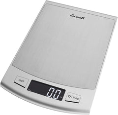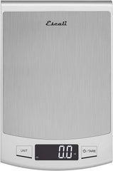 The Escali Passo Digital Scale features an extra large 22 pound capacity and stylish stainless steel design. It is sleek, compact and multifunctional with liquid and dry measurements. The touch sensitive controls and high contrast display are user friendly and easy to read.Measures 9.5" x 6.25" x 0.75"Manufacturer's Lifetime Warranty
