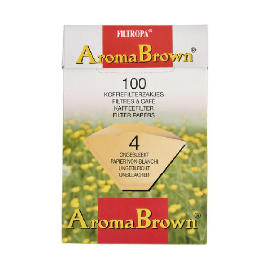 Filtropa, size 4, natural brown, coffee filters made from pure, chlorine-free paper for a clean, pure coffee taste. The dense paper construction ensures even extraction while preventing coffee grounds from seeping through.