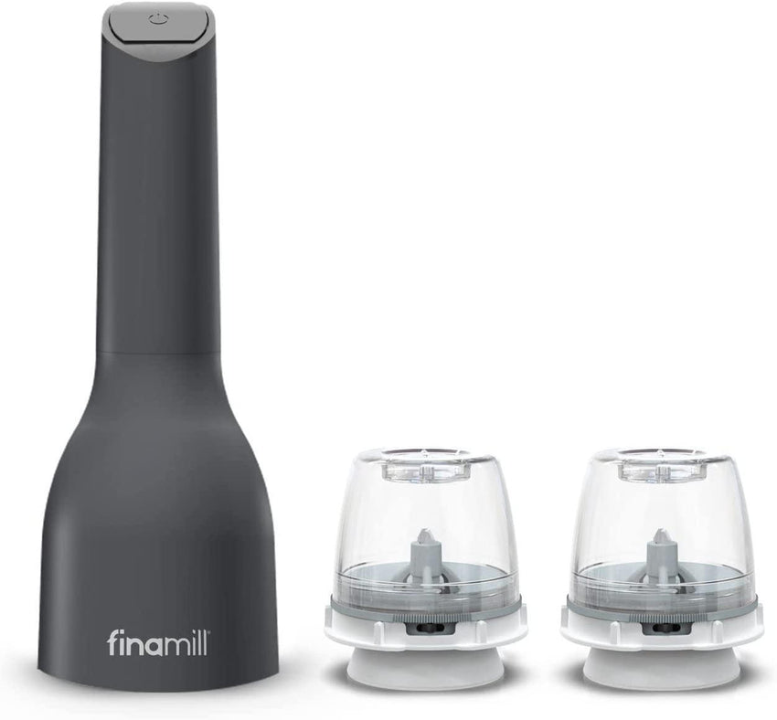 FinaMill is an electric grinder that uses interchangeable and refillable pods. Fill your FinaPod with dried spices or herbs, then start grinding with the push of a button. Changing to another spice is easy. Simply select another FinaPod, click it in using one hand, then grind and savor! A powerful motor quickly turns whole spices into freshly-ground spices to enhance the flavor of your favorite meals Easy adjustment for coarse, medium, and fine grinding. Refillable spice pods keep whole spices fresh without cross-contamination, and can be used multiple times. Easy one-hand, one-touch operation leaves one hand free for cooking prep. Long-lasting and durable construction stands up to everyday use. The sleek, modern design makes FinaMill a worthy addition to any kitchen's existing decor, perfect for the kitchen counter or dining table Small, compact size uses no more counter space than a pepper grinder.