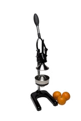 This commercial grade press makes juicing oranges, grapefruits, limes and lemons fast and easy! Put a glass under the press, place a fruit half on the raised cone, press the handle down and watch fresh juice flow into the glass. Thanks to the leverage produced by the long, rubberized handle, the fruit practically juices itself while maximizing juice extraction. It can press up to 1,400 pounds per square inch (PSI), making it quick and easy to serve freshly squeezed juice! Rubber feet coupled with a heavy base provide extra stability. Made of cast aluminum; funnel and extractor made of stainless steel. Removable parts are dishwasher safe. 7" x 8" x 16.5".
