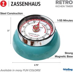 A kitchen classic that everyone loves. This timer’s unique retro design features an attractive, easy-to-read dial face with a colorful painted finish. To operate, simply turn the head and set it to your desired time. Built with sturdy all-steel construction, it features a magnetic back that holds to most metal surfaces- great for use on the oven or fridge.